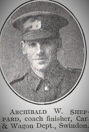 Archibald Walter Sheppard was born on May 4, 1888, the youngest of William and Eliza’s seven children, and grew up in the busy family home in Clifton Street. He began work aged 14 years old as an office boy in the GWR Works and then completed a 6½ year apprenticeship in the Pattern Making Shop, receiving his certificate on May 20, 1909.