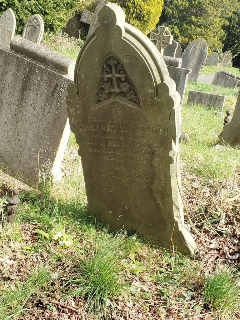 Sadly, Margaret died in January 1882 aged just 29 years old, shortly after giving birth to a baby boy. Her son, George Maskell Bennett, died later that same month. They are buried together in Radnor Street Cemetery in plot E8212.