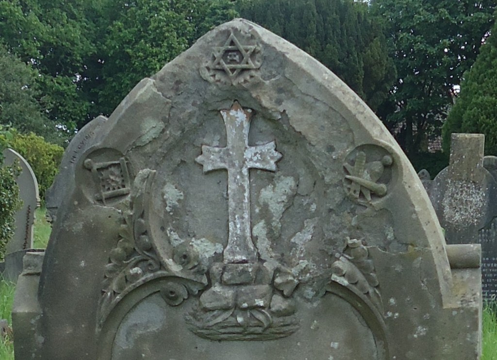 This headstone is decorated with numerous symbols, clearly indicating that Edwin Browne, who is buried here, was a Freemason.