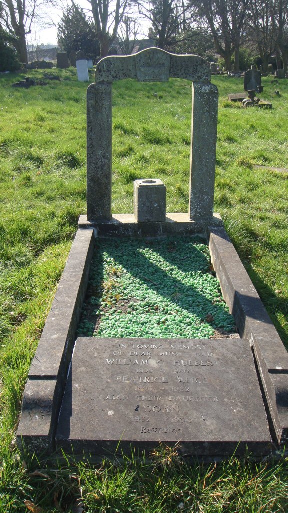 Both William George Hulbert and his wife Beatrice Alice Shepherd would appear to have been born and raised in London. They married in the Lambeth registration district in the June quarter of 1921. By 1934 they were living at 54 Exmouth Street, Swindon where little Joan Edna died that year aged 2 years old. William died in 1960 aged 65. His last home address was 27 Beckhampton Street. Beatrice died more than 20 years later at St Margaret’s Hospital, Ridgeway House, Wootton Bassett.