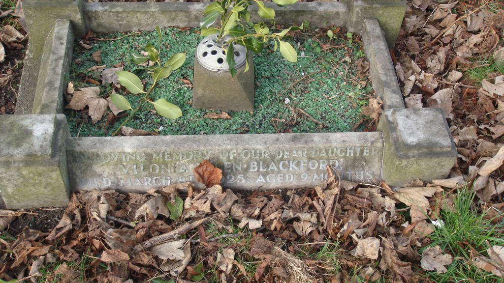 The burial of infants depended very much on the parent’s financial situation. In the past some babies were buried in a family plot, their names added to the memorial at a later date. Others were placed in a communal grave with other babies. Vilonia is buried in this beautiful little grave, close to the path leading to the cemetery chapel.