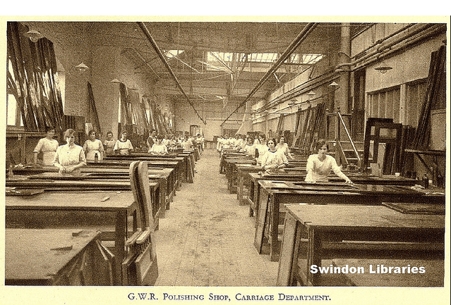 During 1874 and 1875 increasing numbers of women entered the GWR Works employed in the newly created upholstery department. Joseph Armstrong, Locomotive, Carriage and Wagon Superintendent 1864-77, had extended the Carriage Works on London Street and created a separate upholstery department for the employment of girls and unmarried women only. Caroline Shaw started work on November 3, 1875 as a French polisher. French polishing involved stripping back to the basic wood, making good any damage, brushing and sanding and building up the polish again. The women worked on anything made of wood from panels and partitions to toilet seats. Caroline was employed until July 1, 1887 – a week before her wedding on July 9.