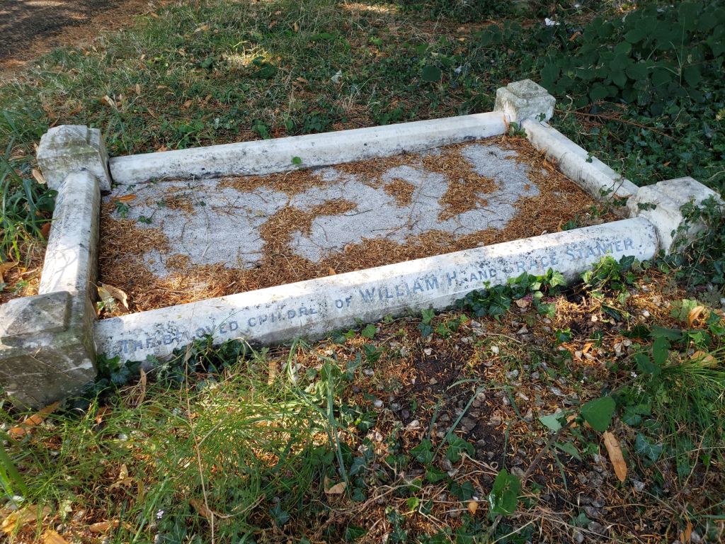 As you might guess, this diminutive grave is that of a child – two young children, infact. Francis John Stanier was born in the summer of 1881 and died in January 1885. He was buried in grave plot A188, aged 3 years old. On May 7, 1886 his 3 week old baby brother Alfred was buried with him. These children were the sons of William Stanier and his wife Grace.