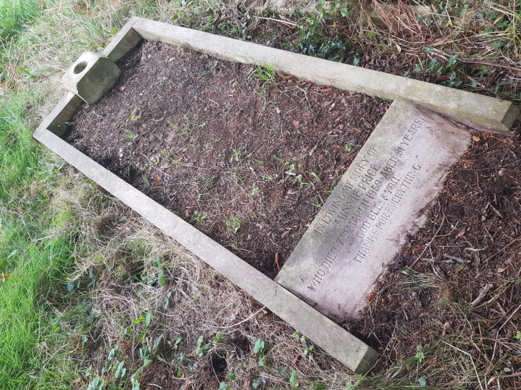 Our cemetery volunteer has returned and completed the clear up of Minnie Price’s grave.