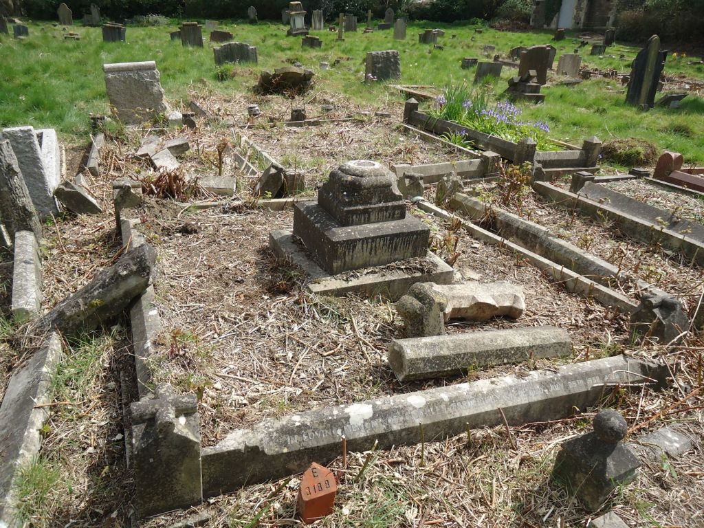 Graves appear and disappear with the passing seasons here in Radnor Street Cemetery. At the moment the grass is tall and the brambles rampant, but in the autumn the Borough Council will come and mow and perhaps this large family grave will reappear again.