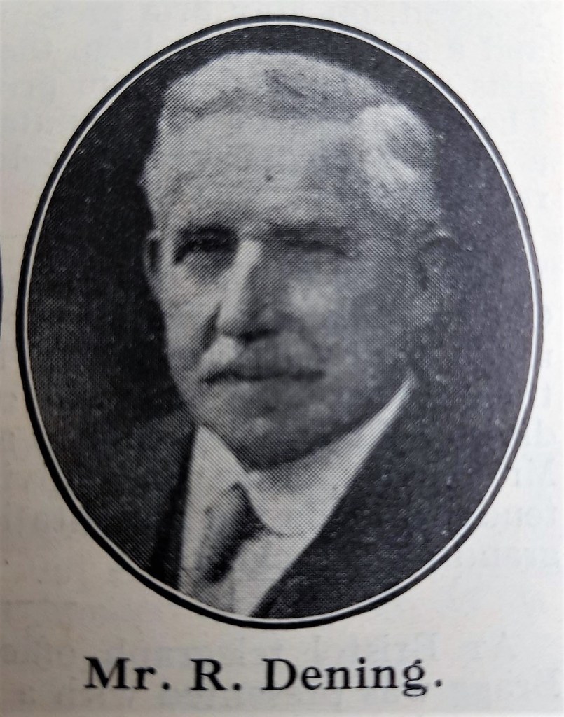 Mr Dening’s son and two daughters attained outstanding educational distinction in each winning the Brunel medal at the London School of Economics, Mr H.R. Dening secured the medal in 1920, and Misses F.E. and I.A. Dening in 1921 and 1922, respectively.
