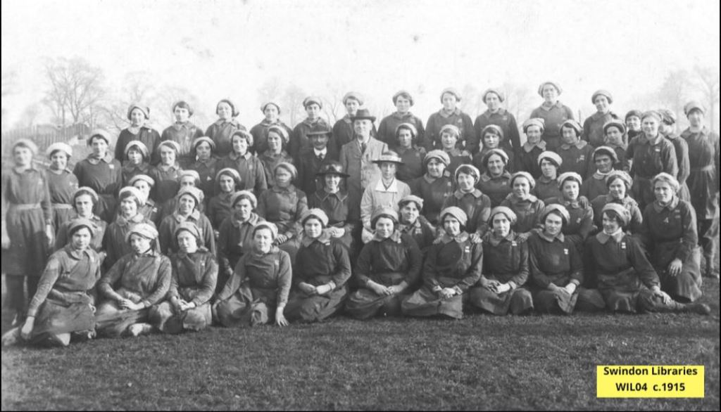 Munitions workers at the Powder Works, Colbourne Street pictured c1915. Tesco now stands on the site. Image published courtesy of Local Studies, Swindon Central Library.
