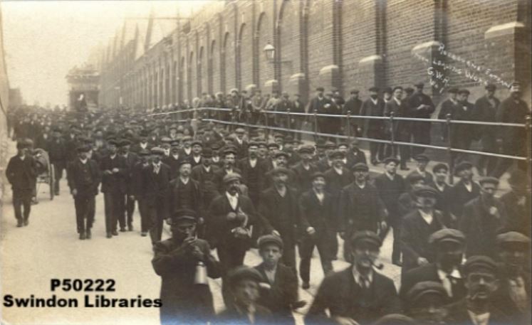 Home time – men leaving the Works. Image published courtesy of Local Studies, Swindon Central Library.