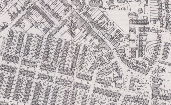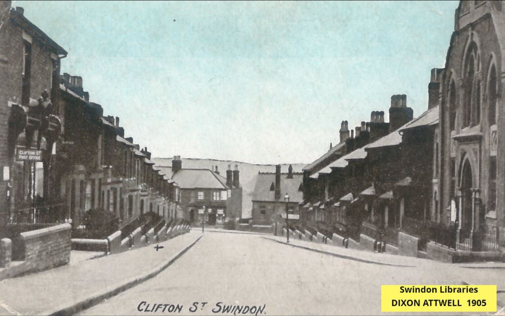 Building began in Clifton Street in about 1879. There were a lot of builders involved, Job Day, James Hinton, Richard Leighfield, which is why the houses all look a little different. There is the Clifton Hotel and 180 houses in Clifton Street; some detached, semi detached, some terraced. Some of them have extensions and loft conversions or porches and some have a name incised in the stonework above the front door, a remnant of a bygone era. There’s a blue house and another with a pink front door and a pink gate and artificial flowers and a heart in the window. The Clifton Stores, still there, stood opposite the the Primitive Methodist Chapel, long gone. There were probably other shops along this long street that stretches from the top of Kingshill to Radnor Street. And tucked away behind is the cemetery.