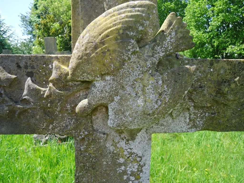Ivy trailing across a headstone symbolises friendship and immortality.