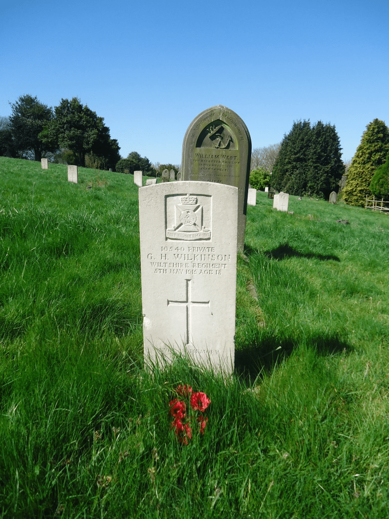 George was born in Milton, Berkshire the second of John and Emma Wilkinson’s large family of ten children. He enlisted with the Duke of Edinburgh’s (Wiltshire) Regiment in Swindon where his mother had grown up and where his grandfather worked in the GWR Works.