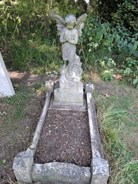 One of our volunteers recently sent me a photo of a grave she had cleared and tidied up. This angel memorial surmounts the grave of a young child. Bex has a knack of finding graves with a particularly poignant story.