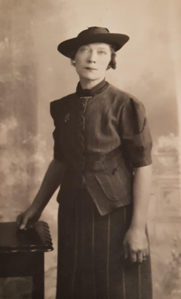There is another precious photo of James and Annie Westall with their three young daughters -Maud standing, baby Mavis on her mother’s lap and Edna Muriel seated on the left of the photograph. Edna died aged 6 not long after this family photograph was taken. Shirley remembered her grandmother had an enlargement made of the section with the pretty little girl with bows in her hair. In amongst the family photographs there is also one of the elegant Annie Westall.